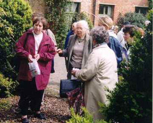 Jelena de Belder (na sliki zgoraj levo), priznana ljubiteljica in žlahtniteljica grmovnic ter publicistka, v razgovoru z urednico revije Moj mali svet Lučko Ušeničnik aprila 1999, ko je skupina slovenskih ljubiteljev lepih vrtov obiskala belgijski arboretum Kalmthout in zasebno, kot velik arboretum urejeno posestvo naše belgijske rojakinje.